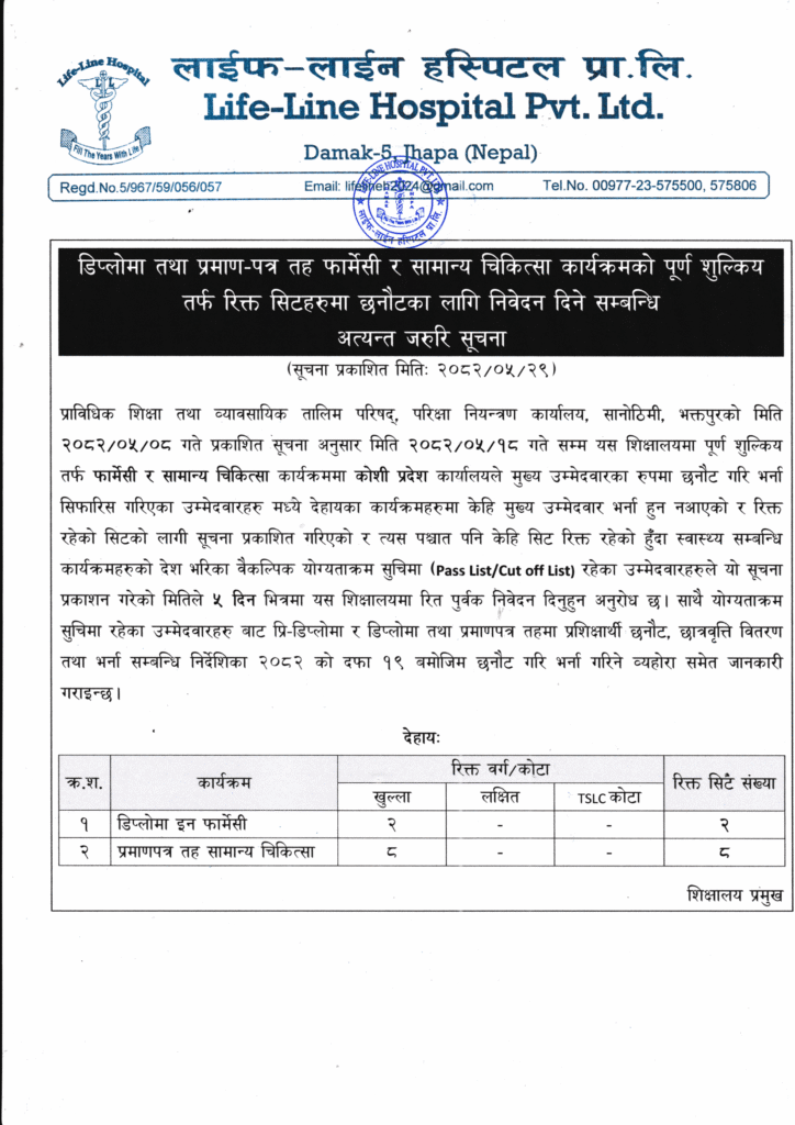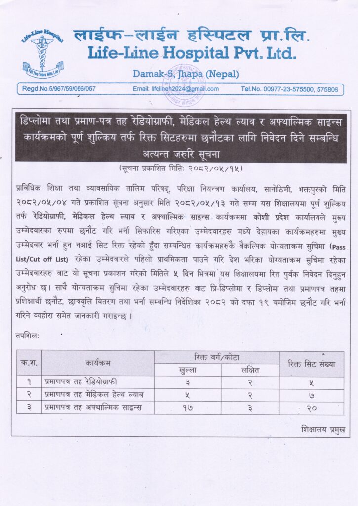 डिप्लोमा तथा प्रमाणपत्र तह रेडियोग्राफी/अफ्थाल्मिक साइन्स र मेडिकल ल्याव टेक्कानोलोजी कार्यक्रमको रिक्त सिटहरुमा आवेदन दिने वारे III