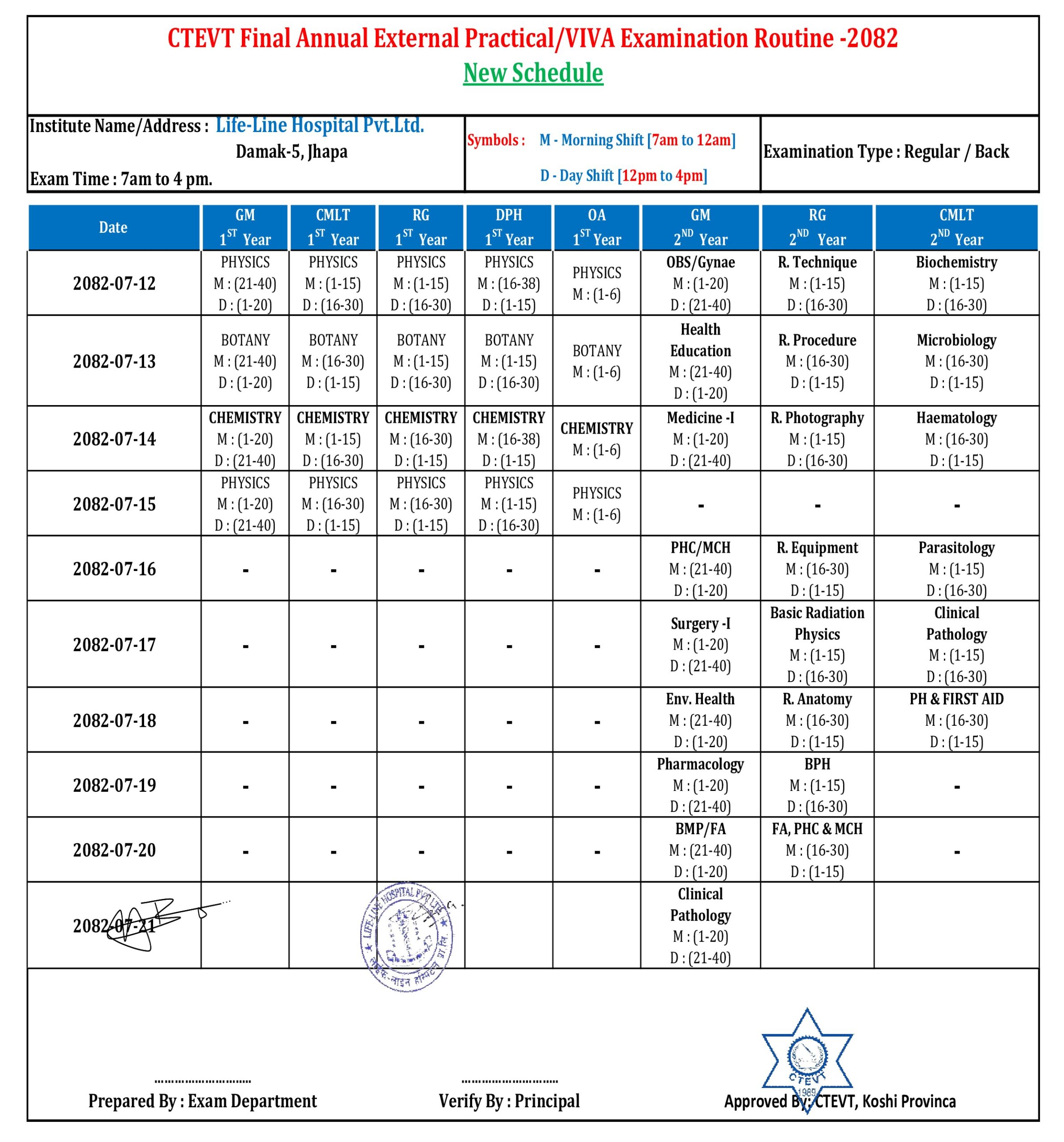 2082 को स्थगित वार्षिक PRACTICAL/VIVA परिक्षा ROUTINE
