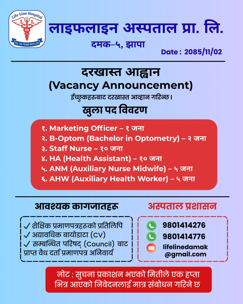 Stay updated with important notices, medical events, and health alerts from Lifeline Hospital, Damak.